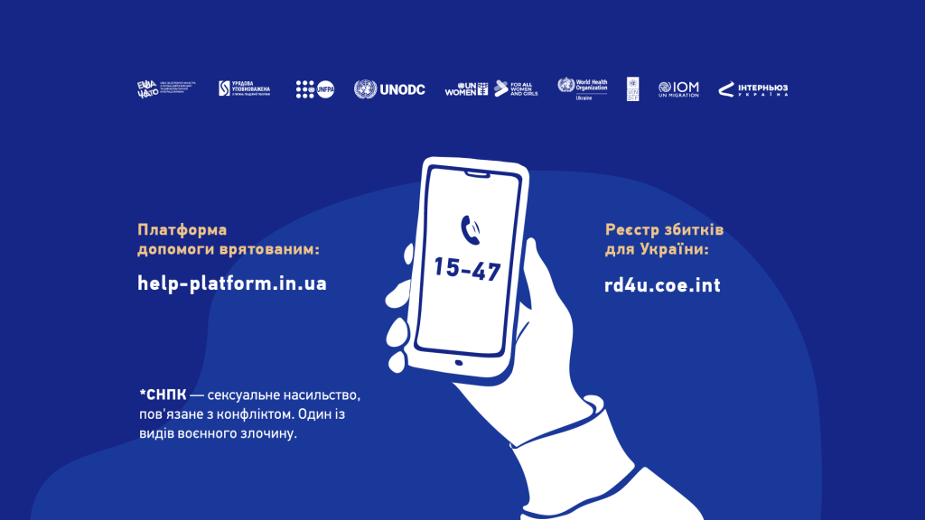 Матеріал створено в межах інформаційної кампанії «Діємо для розширення прав і можливостей постраждалих від СНПК», що реалізується агенціями системи ООН в Україні, Урядом України за підтримки ГО «Інтерньюз-Україна» та за фінансової підтримки Дії ООН проти сексуального насильства під час конфлікту (UN Action Against Sexual Violence in Conflict).
